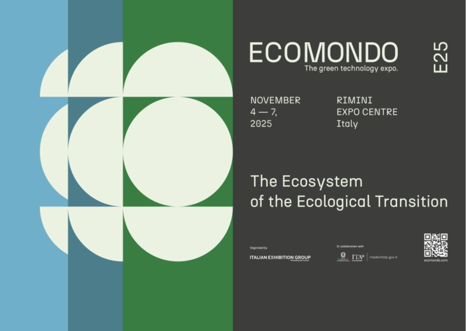 Dal 4 al 7 novembre 2025, si terrà a Rimini, presso il quartiere fieristico, l'edizione annuale di Ecomondo, la Fiera Internazionale leader nei settori della green and circular economy, punto di incontro tra industrie, stakeholder, policy maker, opinion leader, mondo della ricerca e delle istituzioni.
