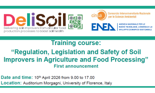 Il progetto europeo DELISOIL organizza il corso gratuito "Regolamentazione, legislazione e sicurezza degli ammendanti in agricoltura e nei processi di produzione agroalimentare", che si terrà a Firenze il 10 aprile 2026.